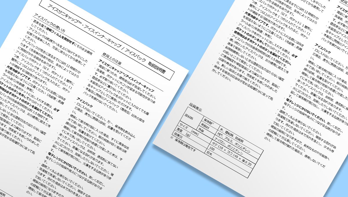 株式会社サンロードさまの新商品「アイスサニキャップ™/アイスインナーキャップ」の取扱説明書を制作いたしました。